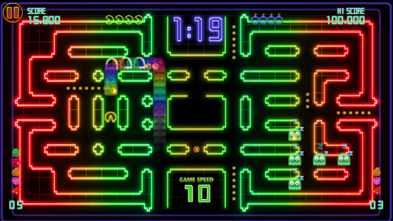 Prepárate para engullir cadenas de fantasmas. Recorre in intensísimo laberinto recogiendo puntos y destruyendo fantasmas, que puedes comer para conseguir bolas de energía. Cada uno de los 132 laberintos ofrece nuevos y emocionantes desafíos y, a medida que vayas avanzando, la velocidad irá en aumento y ganarás más puntos. ¡Pero cuidado! Si te alcanza un fantasma, perderás enseguida todo el impulso acumulado.